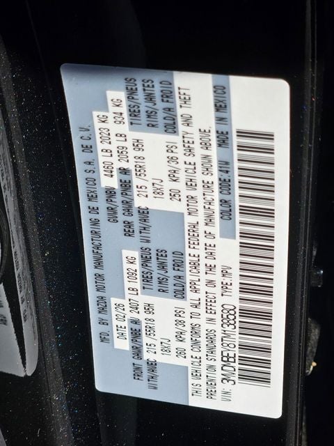 12 Speakers, AppLink/Apple CarPlay and Android Auto, Auto High-beam Headlights, Auto-dimming door mirrors, Automatic temperature control, Black Lug Nuts & Black Wheel Locks, Bumpers: body-color, Emergency communication system: MAZDA CONNECT, Exterior Parking Camera Rear, Front & Rear Splash Guards, Garage door transmitter: HomeLink, Heads-Up Display, Heated Front Bucket Seats, Heated front seats, Heated steering wheel, High Wall All-Weather Floor Mats, Leather Seat Trim, MAZDA CONNECT Infotainment System, Power driver seat, Power Liftgate, Power moonroof, Radio: AM/FM/HD Audio System, Rain sensing wipers, Remote keyless entry, Split folding rear seat, Spoiler, Stainless Steel Rear Bumper Guard, Telescoping steering wheel, Tilt steering wheel, Turn signal indicator mirrors, Variably intermittent wipers, Wheels: 18 x 7J Aluminum Alloy.