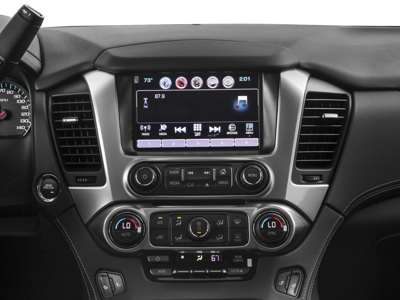 - Audio system, Chevrolet MyLink Radio with 8" diagonal color touch-screen AM/FM stereo, seek-and-scan and digital clock, includes Bluetooth streaming audio for music and select phones; voice-activated technology for radio and phone; featuring Apple CarPlay capability for compatible phone; 5 USB ports and 1 auxiliary jack