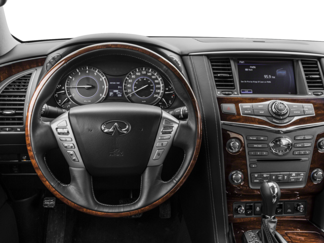 Thank you for considering Lafontaine INFINITI Nissan for your next vehicle! We are home of the Family Deal, and the buy 3, 1 free tire guarantee! All vehicles go through a rigorous inspection process, are serviced to the highest standards, and detailed with state of the art equipment before being placed on the lot. Stop by for your own family deal today! Check out the Features on this one 22 Wheel Package (Wheels: 22 x 8.0 14-Spoke Forged Aluminum-Alloy), All Season Package (All Season Floor Mats and Cargo Protector), Driver's Assistance Package (Backup Collision Intervention (BCI), Blind Spot Warning, and Intelligent Cruise Control (Full-Speed Range)), Theater Package (120V Power Outlet, Dual 7 Color Monitors, Heated 2nd-Row Seats, and Wireless Headphones (2)), 13 Speakers, 2.94 Axle Ratio, 3rd row seats: split-bench, 4-Wheel Disc Brakes, ABS brakes, Activation Disclaimer, Air Conditioning, Alloy wheels, AM/FM radio: SiriusXM, Anti-whiplash front head restraints, Auto High-beam Headlights, Auto tilt-away steering wheel, Auto-dimming door mirrors, Auto-dimming Rear-View mirror, Auto-leveling suspension, Automatic temperature control, Bose Premium Sound System, Brake assist, Bumpers: body-color, Carpeted Cargo Mat/Cargo Net & First Aid Kit, CD player, Delay-off headlights, Driver door bin, Driver vanity mirror, Dual front impact airbags, Dual front side impact airbags, Electronic Stability Control, Emergency communication system: INFINITI Connection, Four wheel independent suspension, Front anti-roll bar, Front Bucket Seats, Front Center Armrest, Front dual zone A/C, Front fog lights, Front reading lights, Fully automatic headlights, Garage door transmitter: HomeLink, Genuine wood console insert, Genuine wood dashboard insert, Genuine wood door panel insert, Heated door mirrors, Heated Front Bucket Seats, Heated front seats, Heated steering wheel, Illuminated entry, Illuminated Kick Plates, Lane Departure Warning System, Leather Shift Knob, Leather steering wheel, Leather-Appointed Seats w/Mocha Burl Trim, Literature Kit, Low tire pressure warning, Memory seat, Navigation System, Occupant sensing airbag, Outside temperature display, Overhead airbag, Overhead console, Panic alarm, Passenger door bin, Passenger vanity mirror, Power door mirrors, Power driver seat, Power Liftgate, Power moonroof, Power passenger seat, Power steering, Power windows, Radio data system, Rain sensing wipers, Rear air conditioning, Rear anti-roll bar, Rear audio controls, Rear reading lights, Rear seat center armrest, Rear window defroster, Rear window wiper, Reclining 3rd row seat, Remote keyless entry, Roof rack: rails only, Security system, Speed control, Speed-sensing steering, Split folding rear seat, Spoiler, Steering wheel memory, Steering wheel mounted audio controls, Tachometer, Telescoping steering wheel, Tilt steering wheel, Traction control, Trip computer, Turn signal indicator mirrors, Variably intermittent wipers, Voltmeter, and Wheels: 20 Split 6-Spoke Aluminum-Alloy.