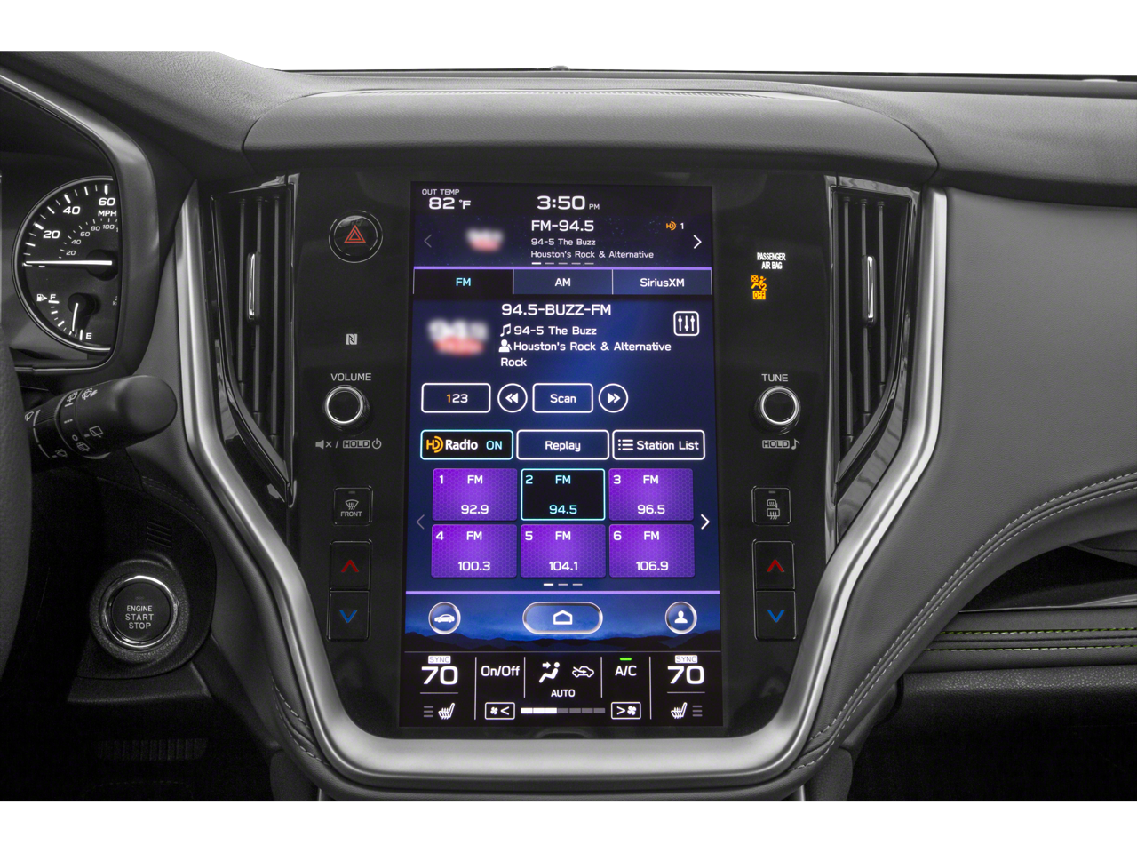 - Radio: Subaru STARLINK 11.6" Multimedia Plus Sys -inc: AM/FM stereo, HD Radio, voice activated controls, Bluetooth® audio streaming and hands-free phone connectivity w/SMS text messaging (applicable w/compatible cellphone), Near Field Communication (NFC), iPod control capability, SiriusXM All Access radio (subscription required), SiriusXM Travel Link (subscription required), smartphone integration: Android Auto, CarPlay and STARLINK cloud applications, 6 speakers, 3.5mm auxiliary input jack and dual USB input ports