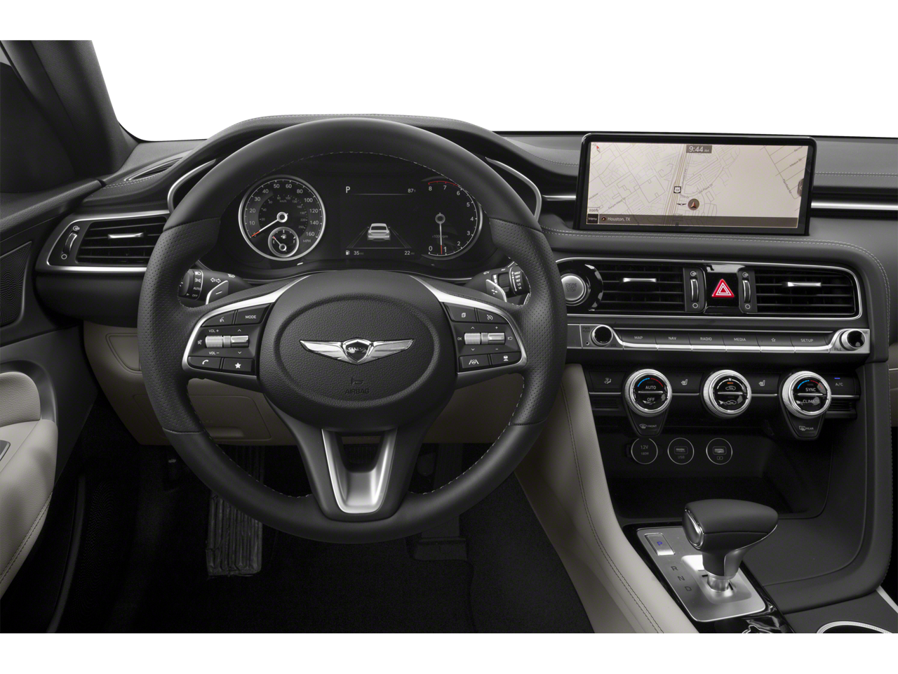 - Radio: AM/FM/SiriusXM/HD Audio System -inc: 6 speakers including subwoofer, 6 channel internal amplifier, speed-sensing auto volume control, 5th generation navigation system w/10.25" touchscreen, dynamic voice recognition, connected routing, over the air updates, Android Auto and Apple CarPlay, Bluetooth® hands-free phone system, steering wheel audio, cruise and phone controls, USB front and Genesis Connected Services