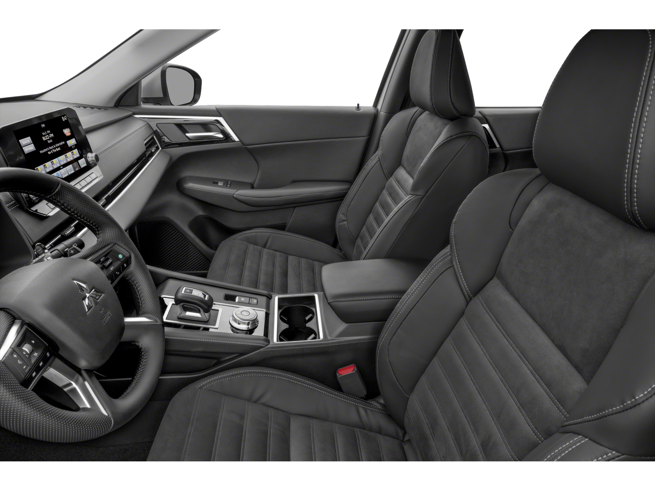 - Radio: AM/FM 9.0" Navigation w/Smartphone Link -inc: 6 speakers, Apple CarPlay, Google Android Auto, SXM all-access and SXM traffic and travel link w/90-day subscription, Mitsubishi Connect, HD Radio, smartphone wireless charger, Bluetooth® wireless technology, steering wheel controls for phone, audio and voice recognition and USB ports