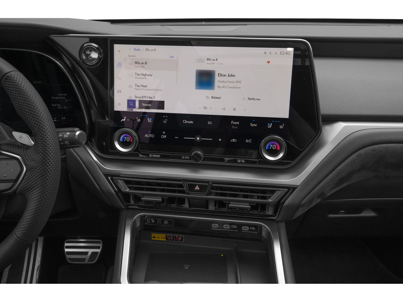 - Radio: Lexus Interface -inc: 12 speakers, 14 inch touchscreen display, Safety Connect and Service Connect w/up to 10-year trial, Remote Connect 3-year trial, Wi-Fi Connect (AT&T hotspot) w/up to 30-day/3GB trial, Drive Connect w/cloud navigation, Intelligent Assistant and Destination Assist 3-year trial, wireless Apple CarPlay integration and wireless Android Auto compatibility